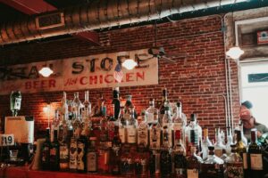A corner beer joint located on the square of the county seat.